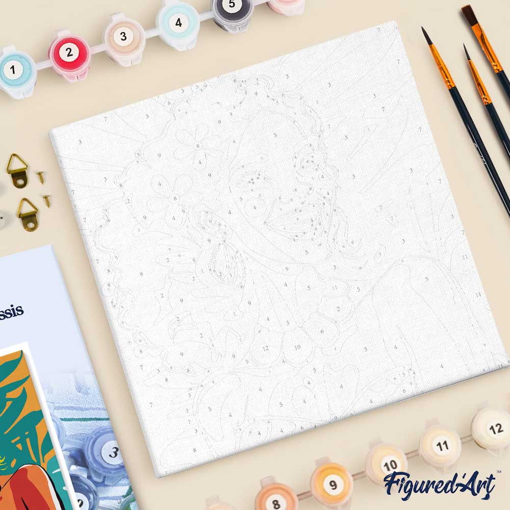 2) Je ontvangt een compleet pakket met genummerd canvas, genummerde potten verf, penselen en een foto van het verwachte resultaat om jou te gidsen. Laat de reis beginnen!