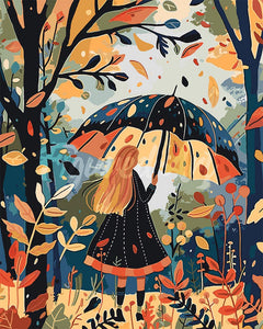 Schilderen op Nummer - Meisje met paraplu in de herfst