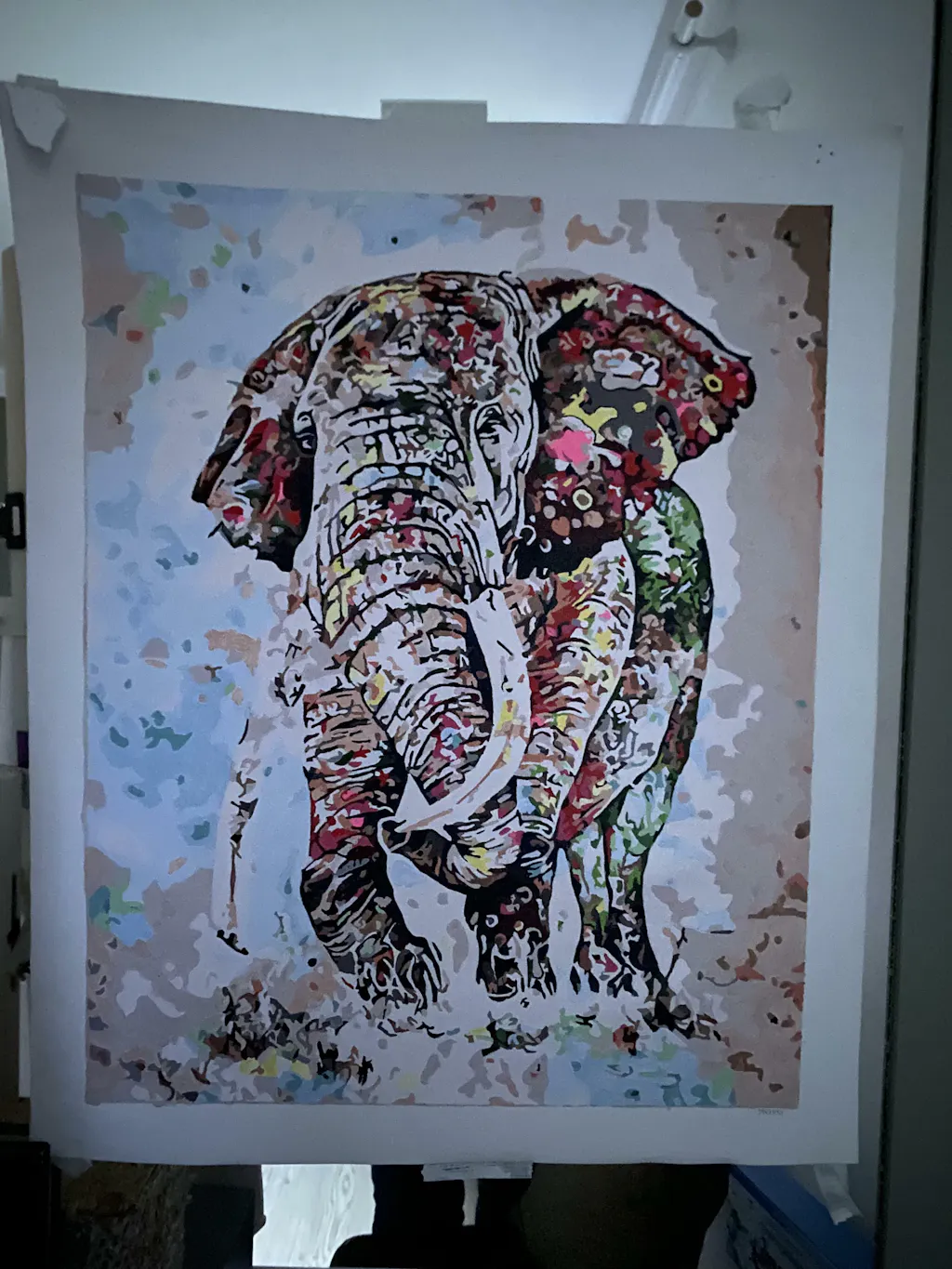 Een miniatuurfoto van het kunstwerk, om te gebruiken als gids tijdens het proces