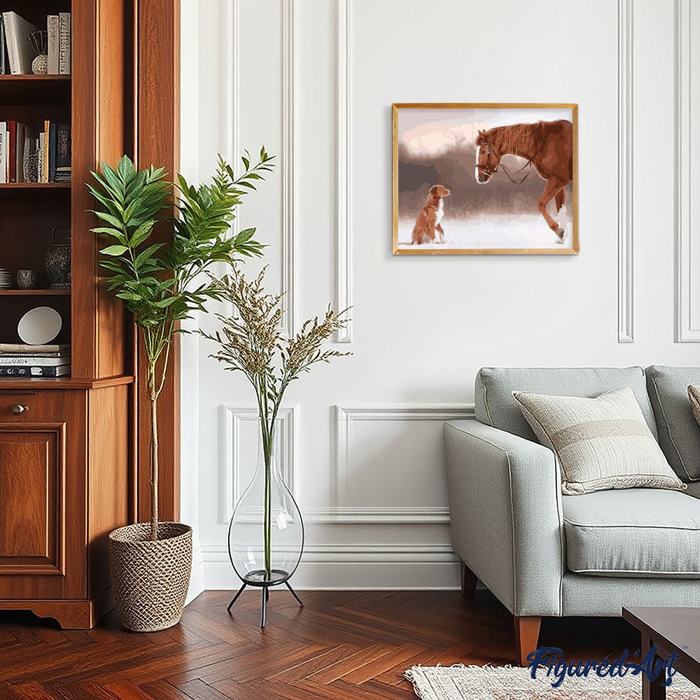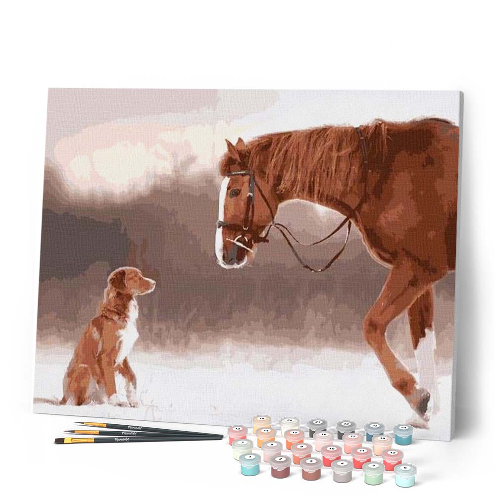 Model: Paard en hond in de sneeuw
