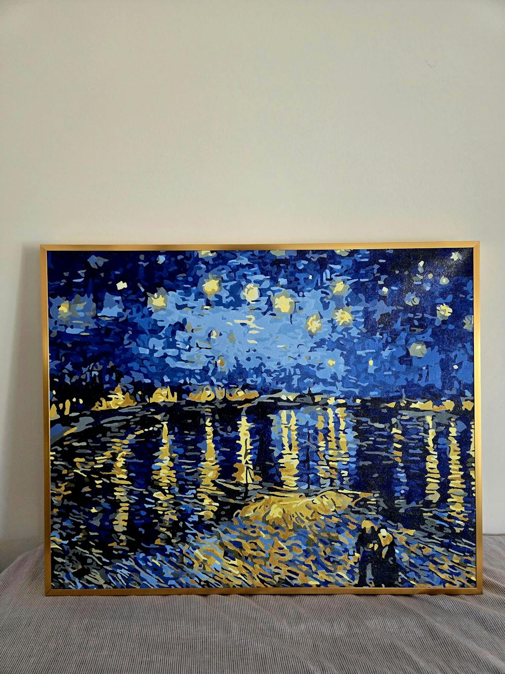 Complete set van schilderen op nummers met opgerold canvas zonder plooien en een houten lijst om zelf in elkaar te zetten.