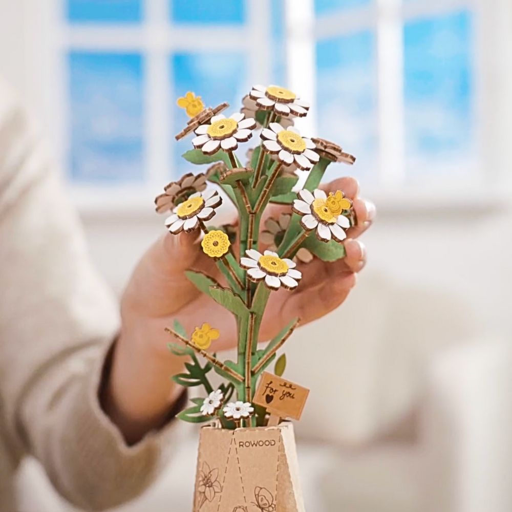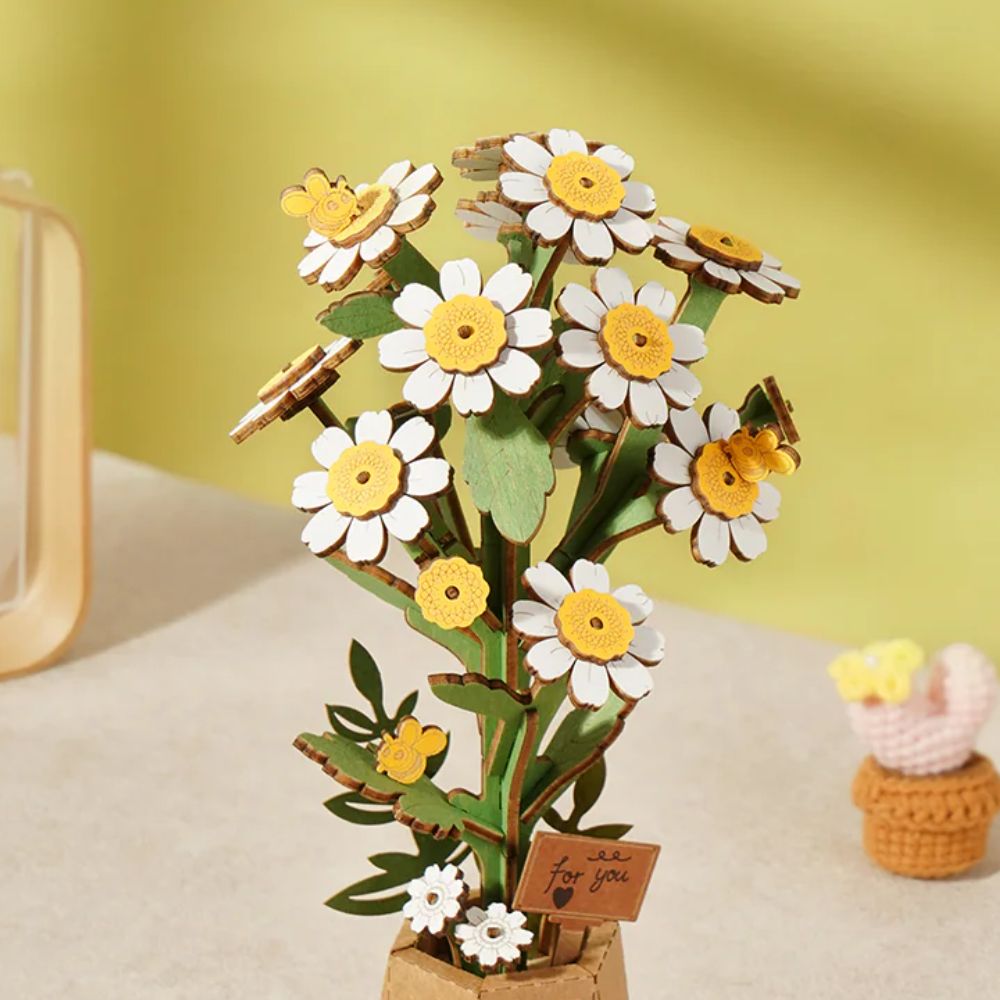 • Bloemontwerp: Bevat laser-gesneden houten bloemen, zoals witte en gele kamilles.