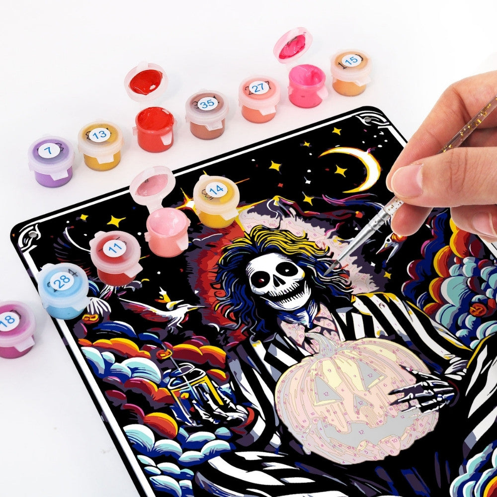 Breng een vleugje griezelige vintage charme naar je ruimte met deze Schilderen op Nummer volwassenen van Figured'Art. Elke metalen poster voor Schilderen op Nummers toont een retro-geïnspireerd ontwerp van de Trickster, afgebeeld als een Halloween-thema arcane, wat een mysterieuze en speelse sfeer toevoegt aan elke kamer. Perfect voor hobbykunstenaars en iedereen die van creatieve projecten houdt. Dit diy kit biedt een leuke en ontspannende manier om je eigen thematische muurkunst te maken. Zodra je kunstwerk klaar is, kun je het eenvoudig ophangen met het meegeleverde henneptouw of vastzetten met schroeven (niet inbegrepen). Ideaal voor het decoreren van elke ruimte waar je een uniek, griezelig vintage kunstwerk wilt tonen. Geniet van een creatieve hobby terwijl je je ruimte persoonlijkheid en charme geeft.