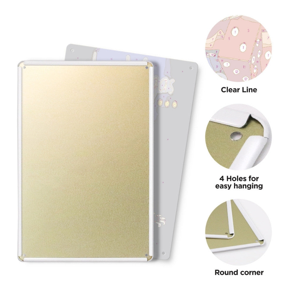 Ondergrond: Vooraf genummerd metalen vel, afgeronde hoeken, 4 ophanggaten