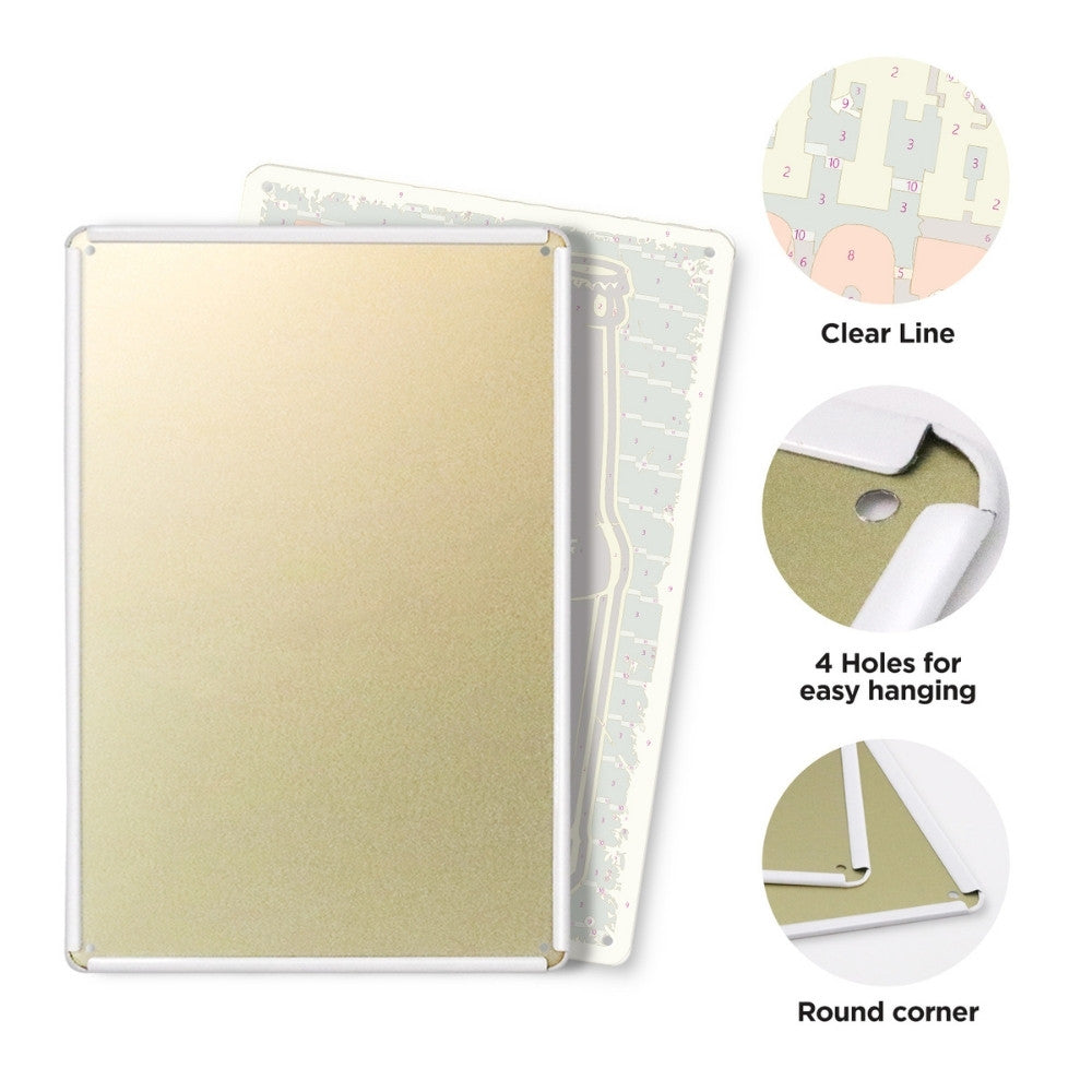 Ondergrond: Vooraf genummerd metalen vel, afgeronde hoeken, 4 ophanggaten
