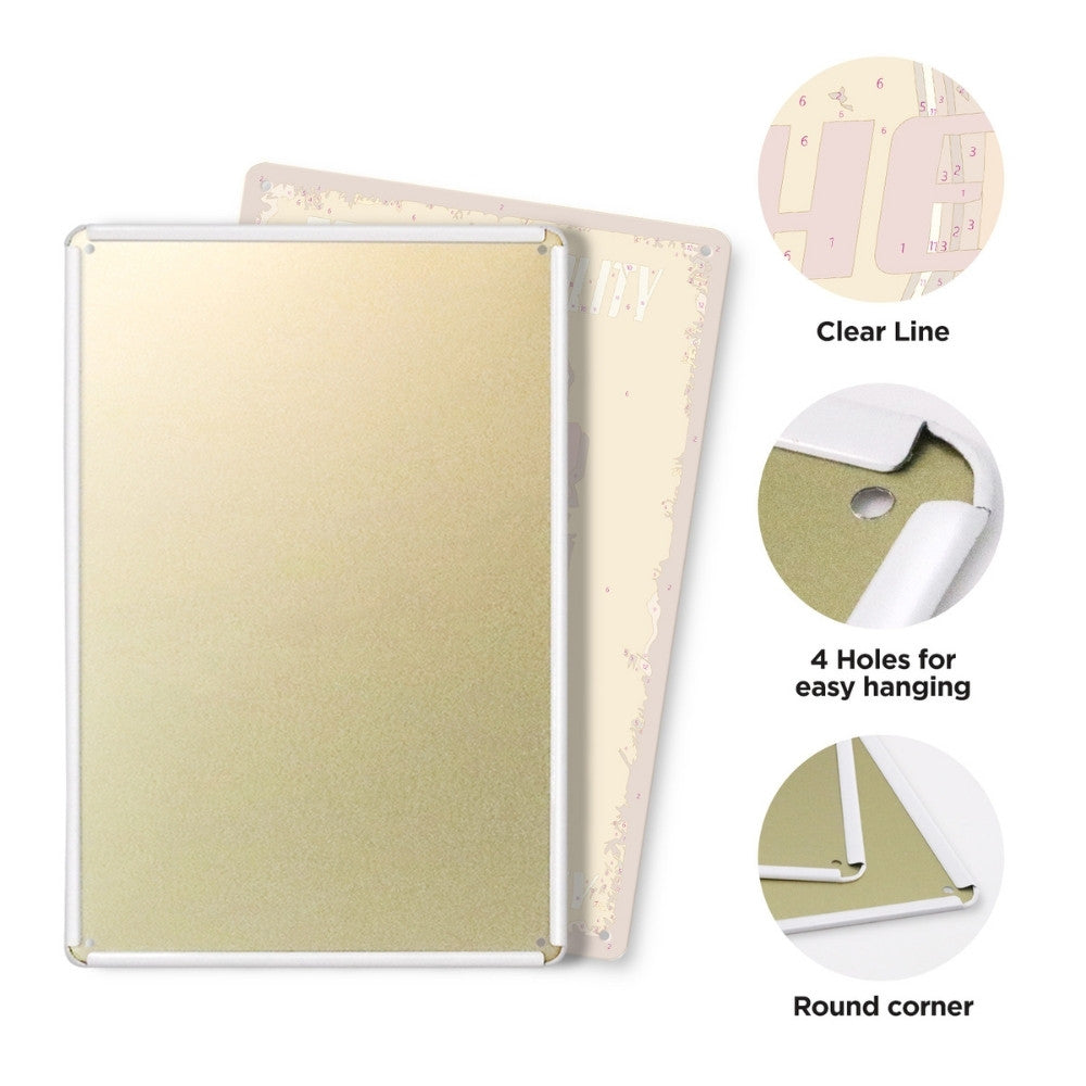 • Vooraf genummerde metalen poster (30 × 20 cm)